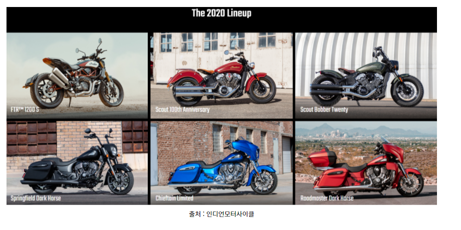 그럼 다음으로 인디언 모터사이클의 라인업에 대해 살펴보겠습니다.
